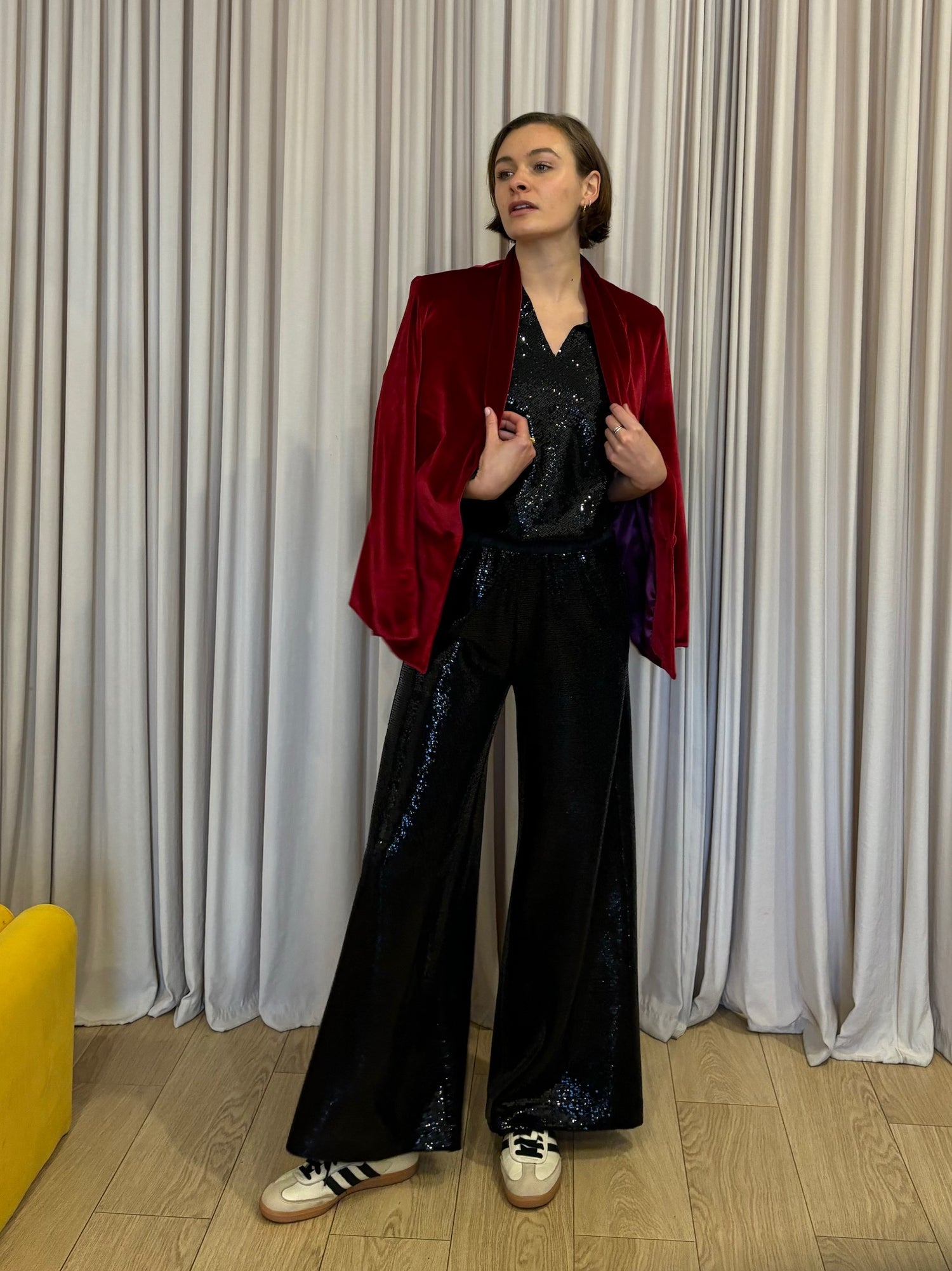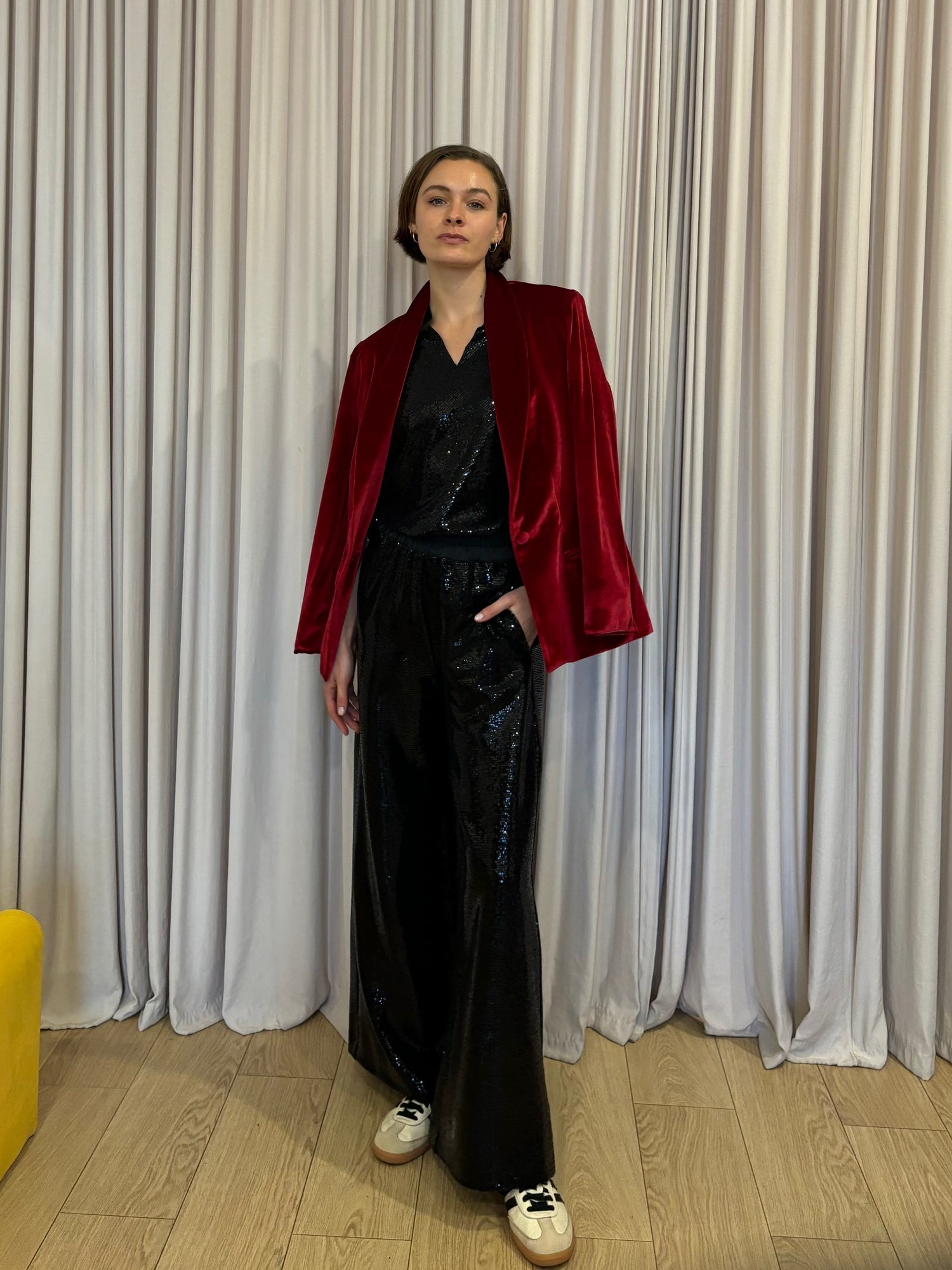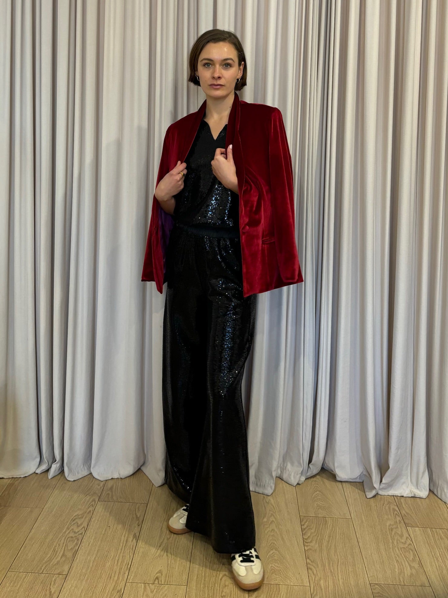 Effortlessly elegant, our double sequin look is the perfect sophisticated ensemble for your upcoming events and occasions. Worn together, or as separates, the pieces look as equally fabulous dressed up or down. Pair with the black sequin top and our signature velvet blazers, or dress down with a tee or knit and sneakers.