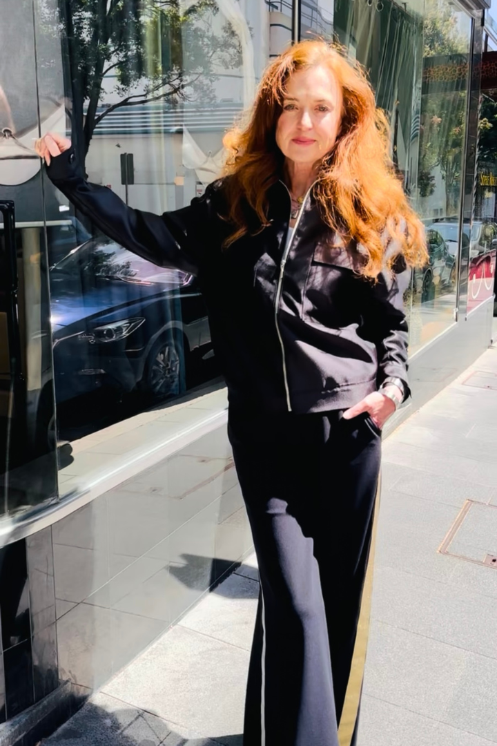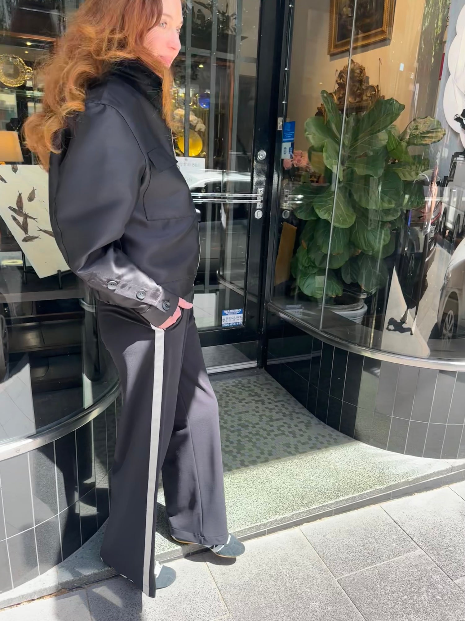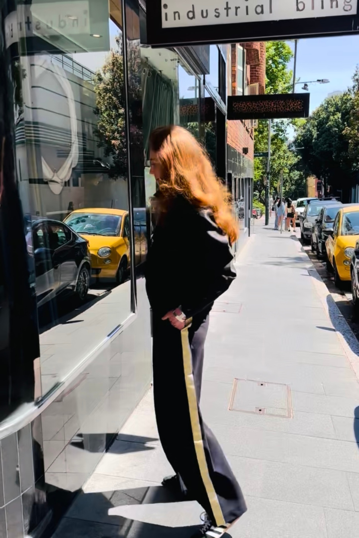 Black Wide Leg Pants with Silver & Gold Side Stripe