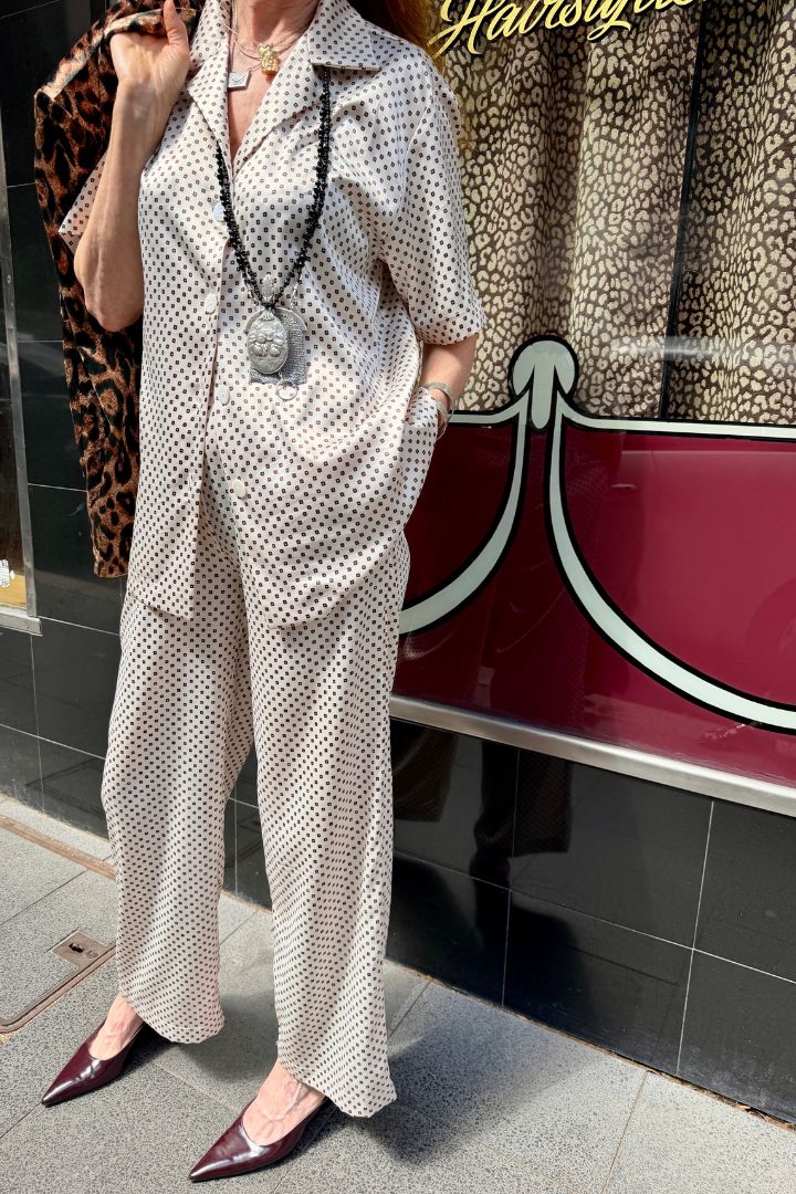 The lightweight fabric glides over the body for a luxurious feel, while the relaxed silhouette creates an easy, flattering fit. Worn buttoned for a sleek look or layered open over a cami or bralette, this versatile piece transitions seamlessly from lounging at home to stepping out in style.